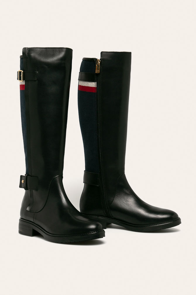 Cizme din colectia Tommy Hilfiger. Model confectionat din combinatia materialului textil cu pielea naturala.