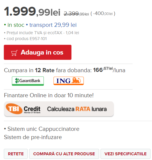 Recomand cumpărarea acestui Espressor Automat CAFFEO SOLO & Perfect Milk, Black Melitta®, deoarece este robust, eficient, performant iar reducerea este de 400 lei. La cumpărarea acestuia primești în plus și un CADOU – o pungă de boabe de cafea cu o aromă si o prospețime unică.