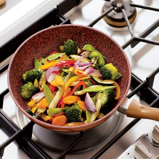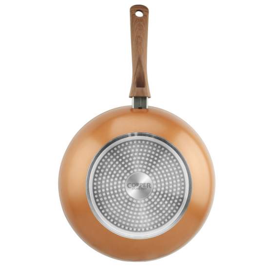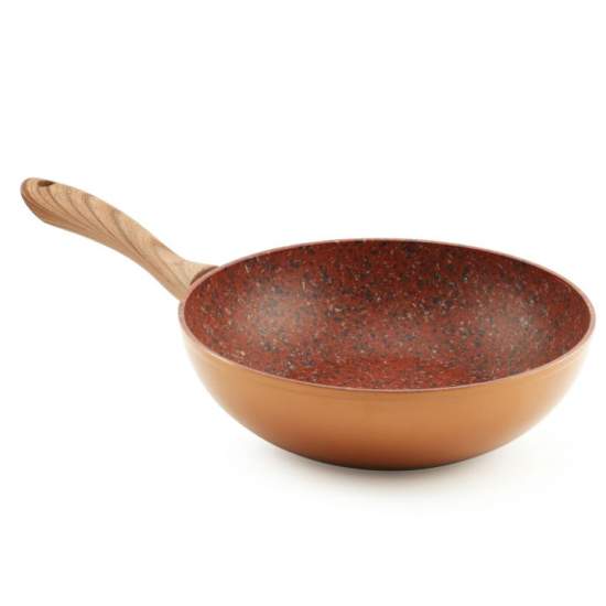 Tigaie wok antiaderentă cu particule de piatră și cupru