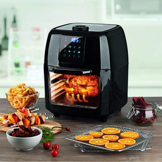 Supreme Hot Air Fryer are display electronic, așa că vei știi în permanență cât durează până mâncarea ta va fi gata, dar și temperatura la care aceasta se coace. Toate funcțiile sunt ușor de controlat, datorită ecranului LCD care oferă informații despre programul selectat, temperatura de gătire și timpul de funcționare. Pe lângă opțiunea de coacere, poți utiliza cu încredere friteuză multifuncţională 9 în 1 și pentru a dezgheța diferite alimente sau pentru a reîncălzi diferite feluri de mâncare pe care le-ai gătit anterior.