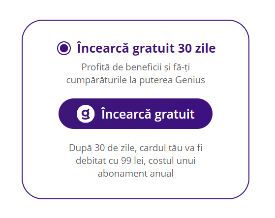 Îl vrei mâine? Alege Genius și ți-l livrăm mâine, fără taxă transport, în easybox sau prin curier! Încearcă gratuit eMAG Genius