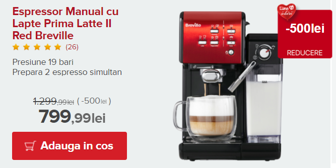 Acest espressor poate fi cumpărat acum de la magazinul breville-romania.ro la prețul de 799 LEI.
