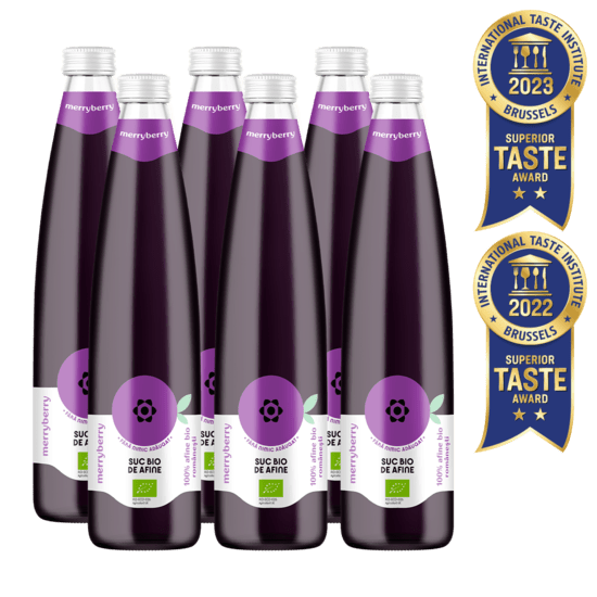 Sucul MerryBerry este cunoscut pentru puritatea sa. Aici vei găsi doar afine BIO românești, crescute în mod ecologic, fără niciun conservant, colorant sau îndulcitor adăugat. Este o sursă autentică de nutrienți pentru sănătatea ta și a întregii familii.