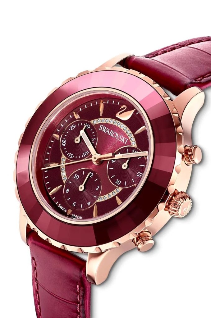 Acest ceas Swarovski din colecție prezintă un design elegant, cu carcasă rotundă și o curea din piele naturală. Este rezistent la apă (WR 50M), potrivit pentru stropituri și înot la suprafață. Cu cadranul protejat de sticlă minerală, ceasul este rezistent la sparturi și greu de zgâriat. Mecanismul cuartz, alimentat cu baterie, asigură precizie, iar orientarea fluorescentă și funcțiile precum cronometrul și cronograful adaugă funcționalitate și stil. Compoziția din piele naturală, oțel și sticlă minerală evidențiază calitatea și rafinamentul acestui ceas.