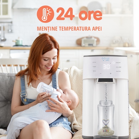 - Dozare precisă a apei: Aparatul permite dozarea precisă a apei în funcție de tipul de formulă de lapte, eliminând astfel riscul de sub sau supra-dozează.