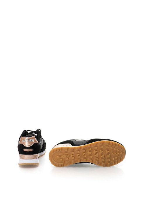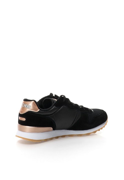 Tenișii Skechers negru cu auriu roz retros nu sunt doar o alegere de încălțăminte, ci o revelație a stilului personal și a eleganței redefinite Experimentează această simfonie a modei și bucură-te de fiecare pas într-o călătorie a rafinamentului și al confortului.