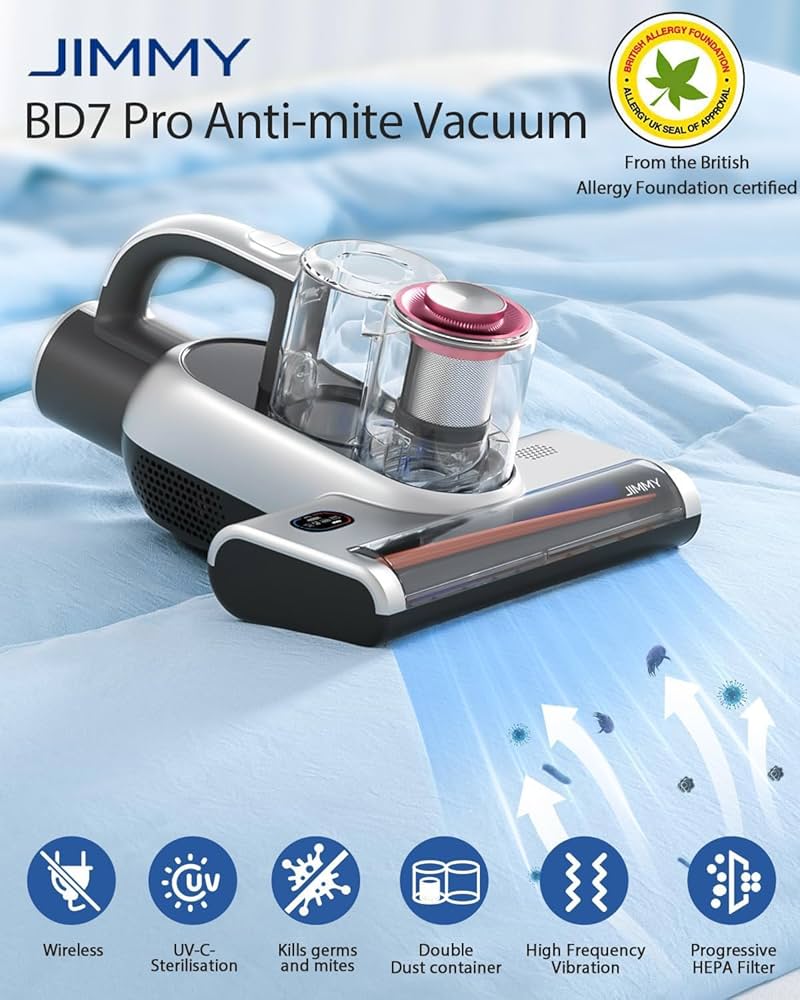 Protecție împotriva alergiilor: Grație tehnologiei sale de sterilizare avansate, aspiratorul JIMMY BD7 Pro este perfect pentru persoanele care suferă de alergii, eliminând eficient acarienii și bacteriile de pe saltele și alte suprafețe textile.
